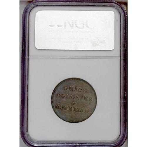 <B>Prince Edward Island Ships Colonies & Commerce token ND (1835),</B></I> BR-997, CH-PE1028, MS62 Brown NGC. NGC has this piece mis-attributed on the holder as PE109.