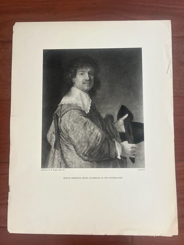 Antique reproduction of Rembrandt etching, 16.5 " x 12.5", image approx. 8"x9.375" Prince Frederick Henry Governor of Netherlands