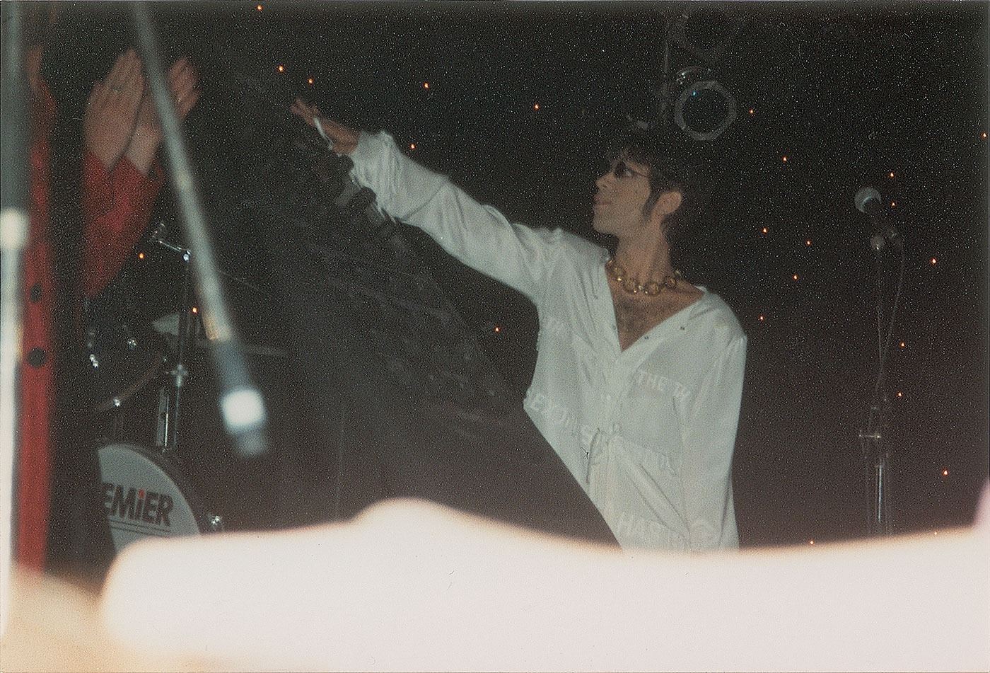 Collection of unpublished Prince photographs, including three photos and one slide from his 1993 Paisley Park KMOJ Benefit Show and seven photographs from the 1994 VH1 launch in London: