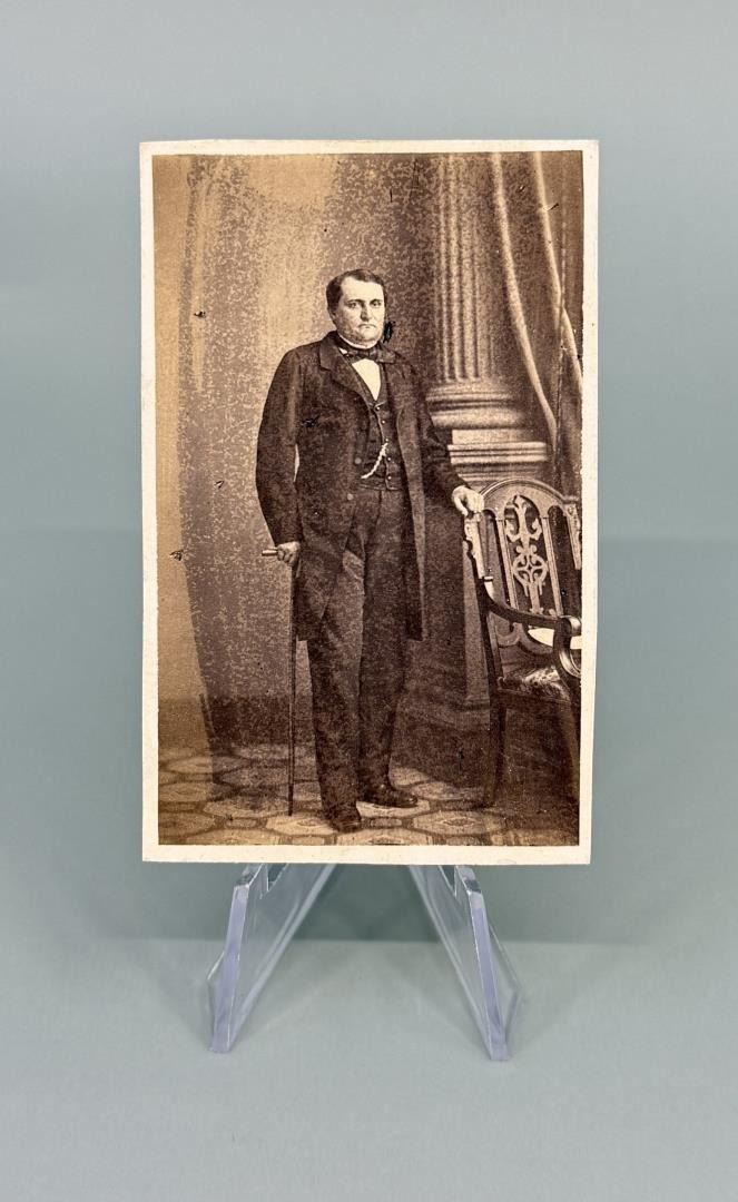 Published by E. Anthony. From Brady's National Portrait Gallery. Prince Napoléon Joseph Charles Paul Bonaparte, usually called Napoléon-Jérôme Bonaparte or Jérôme Bonaparte, was the second son of Jérôme, King of Westphalia, youngest brother of Napoleon I, and his second wife Catharina of Württemberg. Following the death of his cousin Louis-Napoléon, Prince Imperial in 1879, he claimed headship of the House of Bonaparte until his death in 1891. An outspoken liberal however, he was passed over as heir in his cousin's final will, which instead chose his elder son Victor, who was favored by most Bonapartists. From the 1880s onwards, he was one of the stronger supporters of General Georges Boulanger, together with other monarchist forces. As well as bearing the title of Prince Napoléon, given to him by his cousin Emperor Napoleon III in 1852, he was also 2nd Prince of Montfort, 1st Count of Meudon and Count of Moncalieri, following his marriage with Maria Clotilde of Savoy in 1859. His popular nickname, Plon-Plon, stemmed from his difficulty in pronouncing his own name while still a child, although other notable historians and contemporary letters by his nephew Colonel Jérôme Bonaparte claim it was because he ran in cowardice during battle when the bombs fell. Another nickname, "Craint-Plomb" ("Afraid-of-Lead",) was given to him by the army due to his absence from the Battle of Solferino.