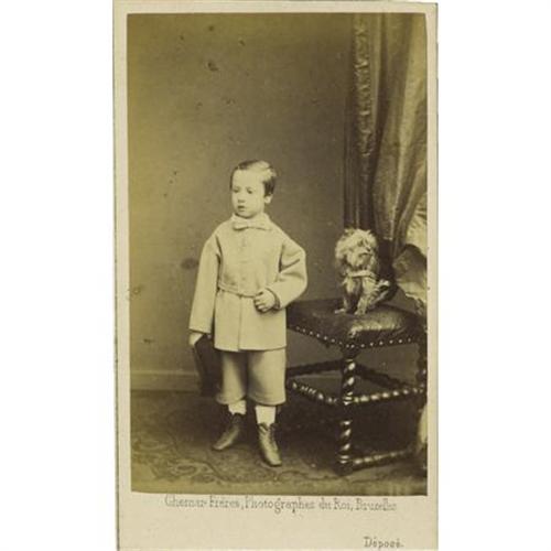 <B>Prince Leopold of Belgium, Duke of Brabant </B></I><B><I>Carte de Vistie</B></I></B></I><B>,</B></I> 2.5" x 4", with a light pencil notation on the reverse. Near fine. Prince Leopold (1859-1869), was the second child and only son and heir of Leopold II of Belgium and his wife, Archduchess Marie Henriette of Austria. Leopold died at Laken on 22 January 1869 from pneumonia, after falling into a pond. At his son's funeral, Leopold II, for the first and only time in his life, "broke down in public, collapsing to his knees beside the coffin and sobbing uncontrollably."<BR><BR><BR><b>Shipping:</b> Flat Material, Small (<a target="_blank" href="http://www.heritageauctions.com/common/shipping.php">view shipping information</a>)