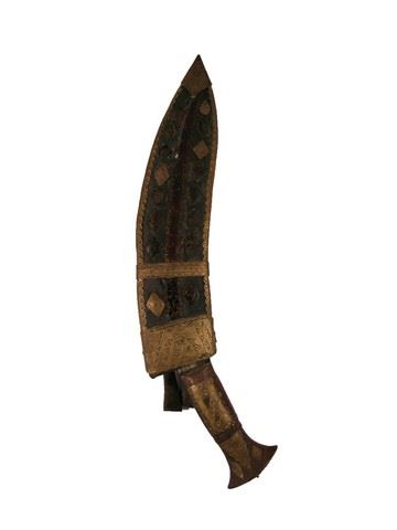 From Prince of Persia Sands of Time (2010) comes this production used thin metal curved knife with sheath. (approx. 17" long)