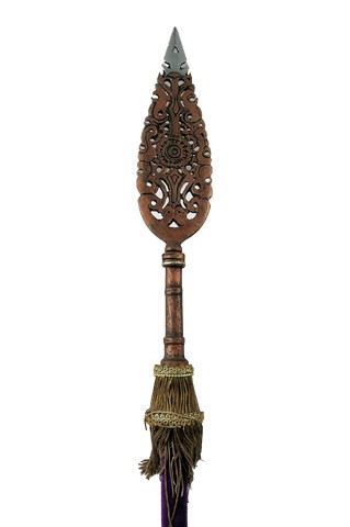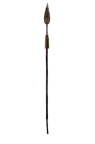 Straight from the production of Prince of Persia: The Sands Of Time (2010) comes this very intricate wood with purple and gold designed long spear. (approx. 81" long)