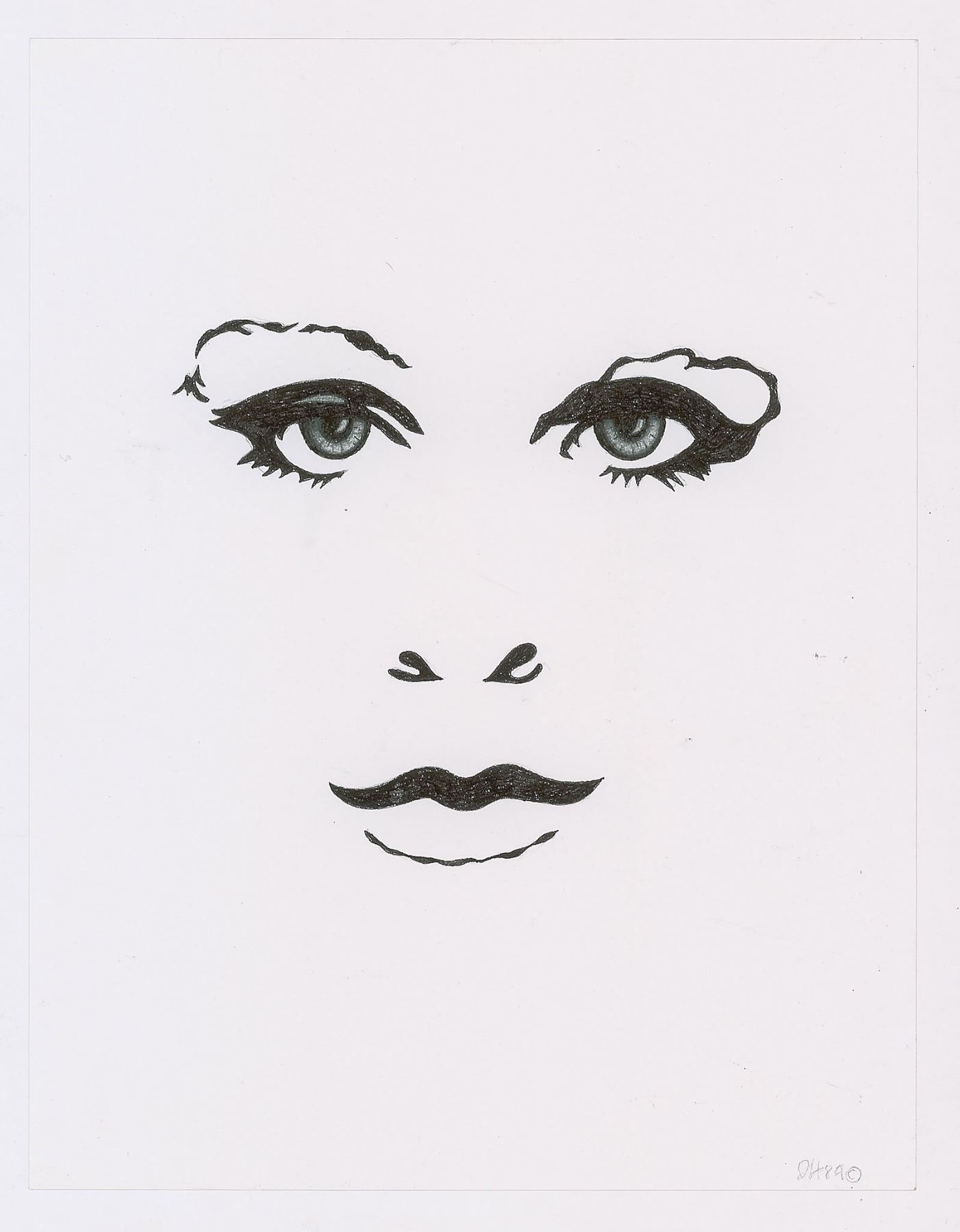 Original sketch of the iconic face design from Prince's massive Purple Rain Tour, accomplished in ink and graphite on a white 10.75 x 14 sheet by artist Doug Henders, who adds his initials below in graphite, "DH 89." In very fine condition.