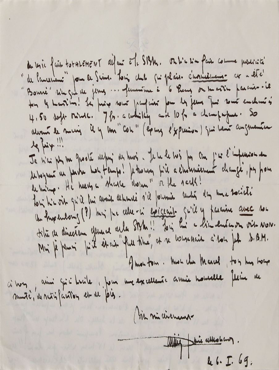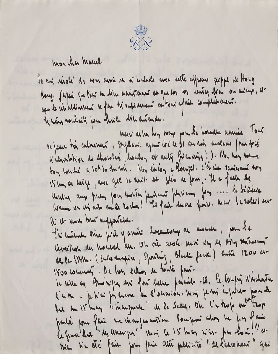 Untranslated ALS in French, signed “Rainier Prince de Monaco,” one page both sides, 8 x 10.5, personal monogrammed letterhead, January 6, 1969. In fine condition.