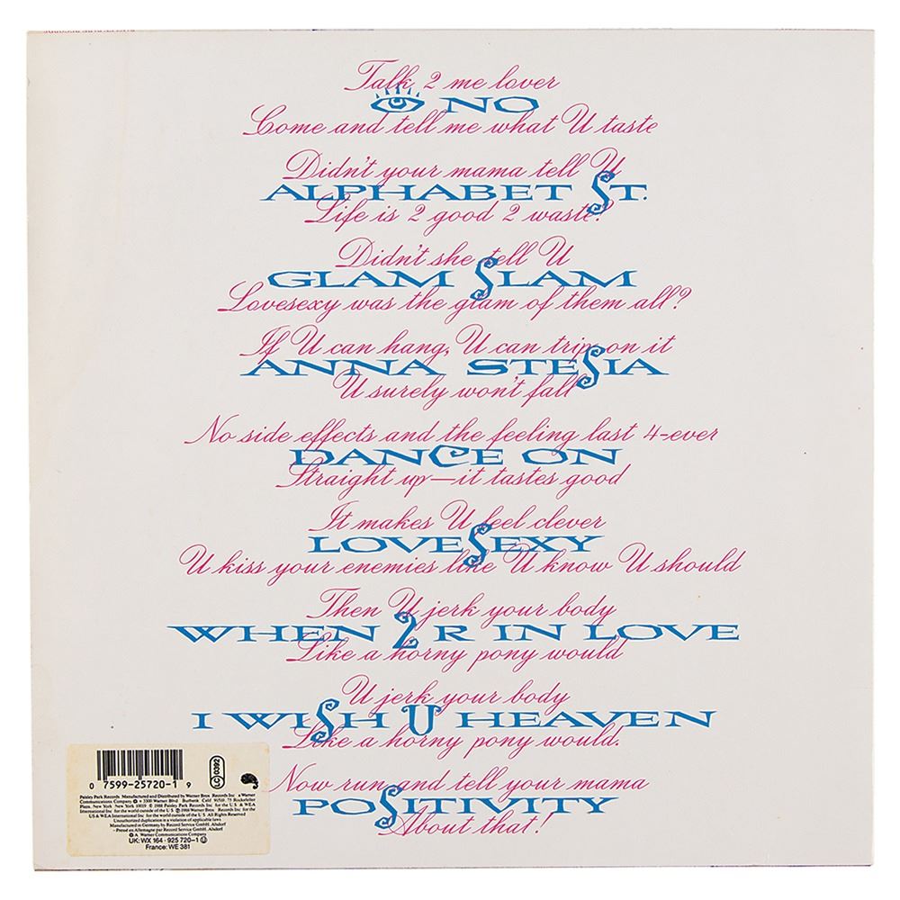 In December 1987, following a spiritual epiphany in which Prince was convinced that ‘The Black Album’ was evil, he quickly reentered the studio and recorded a much more positive album in ‘Lovesexy.’ The album was recorded in just seven weeks at Prince's new Paisley Park Studios and was primarily a solo effort by Prince. The album was supported by the critically acclaimed Lovesexy Tour, which traversed the globe from July 8, 1988, to February 13, 1989. Prince was a notoriously reluctant signer during his lifetime and, as such, authentically signed albums by Prince are exceedingly rare, this being an outstanding example captured at the apex of his career.