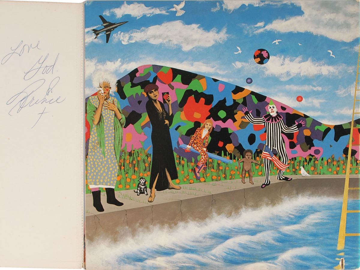 Around the World in a Day album signed on the inside of the reverse flap in blue ballpoint, “Love God, Prince,” adding a small cross below. In fine condition, with a discount cut to the lower edge. The record is included. Accompanied by a letter of provenance from the original recipient, in part: “I am a retired Chief (Director of the Plan Check Program) formerly with the L.A. County Department of Health. In 1985 or 1986, as a senior plan checker, I was responsible for the construction plan review and final approval for Lulu Restaurant…in Santa Monica…Prince was a silent partner, in that project. I worked closely with the general contractor, Mr. Jim Hoskinson, a well respected businessman…In appreciation, for my assistance, Prince, gifted me, via Mr. Hoskinson, the above mentioned autographed album.”