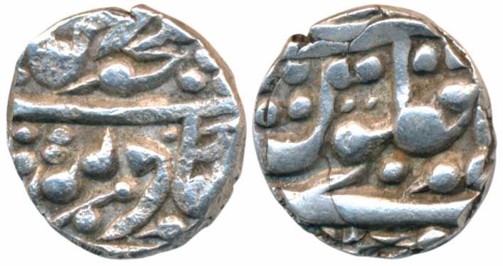 Bani Singh (AH 1231-1273, 1815-1857 AD), Silver ¼ Rupee, 2.75g, Rajgarh Mint, in the name of Muhammad Akbar II (KM 18). About Extremely Fine, Very Rare.