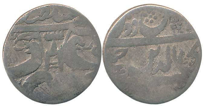 Ghazi ud din Haider Shah, Silver 1/8 Rupee- 2 Anna, 1.18g, Suba Awadh Dar ul Sultanate Lakhnau Mint, Crown flanked by rampart Lions holding flag, two upright Fish below on obverse (Master & Kapoor# 7.32). Fine+, rare.