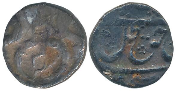 Ghazi ud din Haider Shah, Silver 1/8 Rupee- 2 Anna, 1.37g, Suba Awadh Dar ul Sultanate Lakhnau Mint, RY 3, Crown flanked by rampart Lions holding flag, two upright Fish below on obverse (Master & Kapoor# 7.32). About very fine, rare.