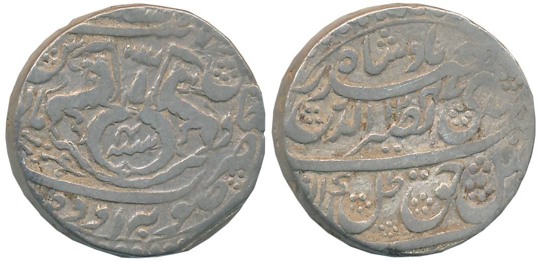 Nasir ud din Haidar Shah, Silver Rupee, 11.00g, Suba Awadh Dar ul Sultanate Lakhnau Mint, AH 1247/ RY 4, Crown flanked by rampant Lions holding flag, two upright Fish below on obverse (Master & Kapoor# 8.23). Very fine.