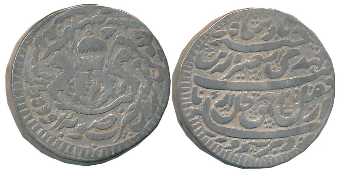 Nasir ud din Haider Shah, Silver Rupee, 11.00g, Suba Awadh Dar ul Sultanate Lakhnau Mint, AH 1250/ RY 7, Crown flanked by rampant Lions holding flag, two upright Fish below on obverse (Master & Kapoor# 8.39). Fine+.