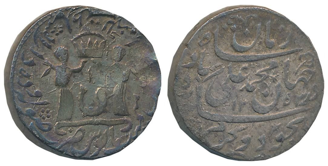 Muhammad Ali Shah, Silver Rupee, 11.19g, Suba Awadh Dar ul Sultanate Lakhnau Mint, AH 1253/ RY Ahad, Crown flanked by attendant on obverse (Master & Kapoor# 9.03). Very fine.