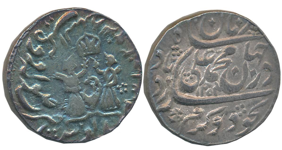 Muhammad Ali Shah, Silver Rupee, 11.15g, Suba Awadh Dar us Sultanate Lakhnau Mint, AH 1254/ RY 2, Crown flanked by attendant on obverse (Master & Kapoor# 9.17). Very fine.
