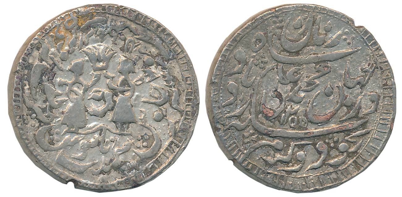 Muhammad Ali Shah, Silver Rupee, 11.15g, Broad flan, Mulk Awadh Baitu s Sultanate Lakhnau Mint, AH 1255/ RY 3, Crown flanked by attendant on obverse (Master & Kapoor# 9.32). Test cut on edge otherwise very fine.