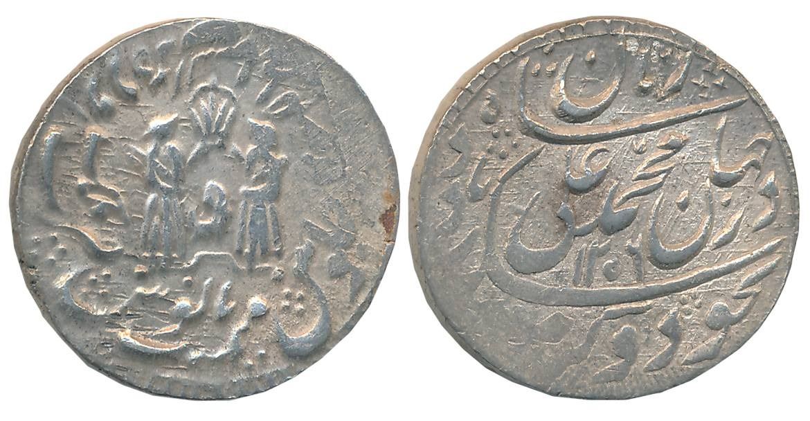 Muhammad Ali Shah, Silver Rupee, 11.16g, Mulk Awadh Bait us Sultanate Lakhnau Mint, AH 1256/ RY 4, Crown flanked by attendant on obverse (Master & Kapoor# 9.41). Very fine.