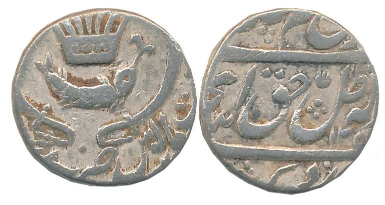 Amjad Ali Shah, Silver 1/4 Rupee, 2.68g, Mulk Awadh Bait us Sultanate Lakhnau Mint, AH 126X, Crown above Fish on obverse (Master & Kapoor# 10.29). Very fine, very rare.