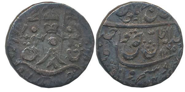 Wajid Ali Shah, Silver 1/8 Rupee- 2 Anna, 1.36g, Mulk Awadh Bait us Sultanate Lakhnau Mint, AH 1265, Parasol above crown flanked by Mermaids, crossed swords below on obverse (Master & Kapoor# 11.15). Very fine.