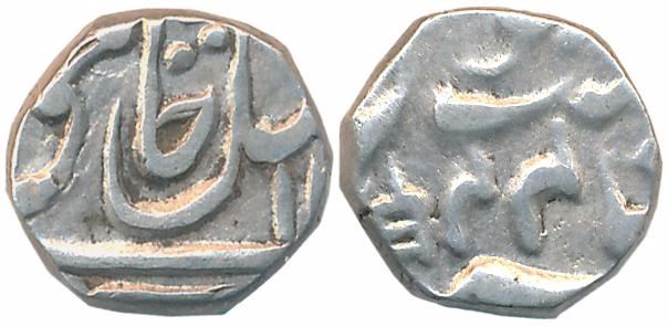 Silver 1/4 Rupee, 2.67g, in the name of Shah Alam II, RY 44, Scimitar & Katar as a mint mark (KM# 8a). Very fine, scarce.