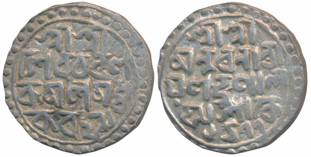 Nara Narayan, Silver Tanka, 10.4g, SK 1477, Bengali script in four lines (KM 34.2). Very Fine+.