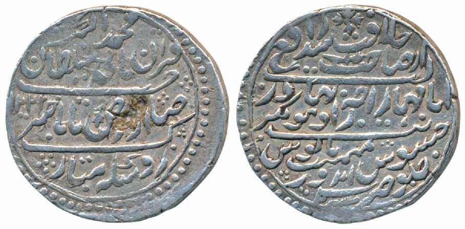 Jaswant Rao, Silver Nazarana Rupee, 14.71g, Indore Mint, in the name of Muhammad Akbar II, AH 1222/21 (KM 8). Fine+.