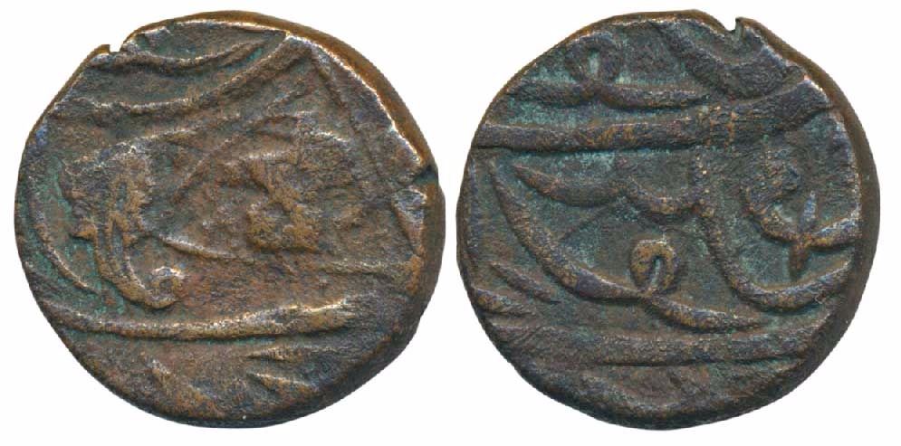 Maheshwar Mint, Copper ½ Anna, obv. lion facing a palm branch, rev. mint name (KM A53). Very Fine+, Scarce.