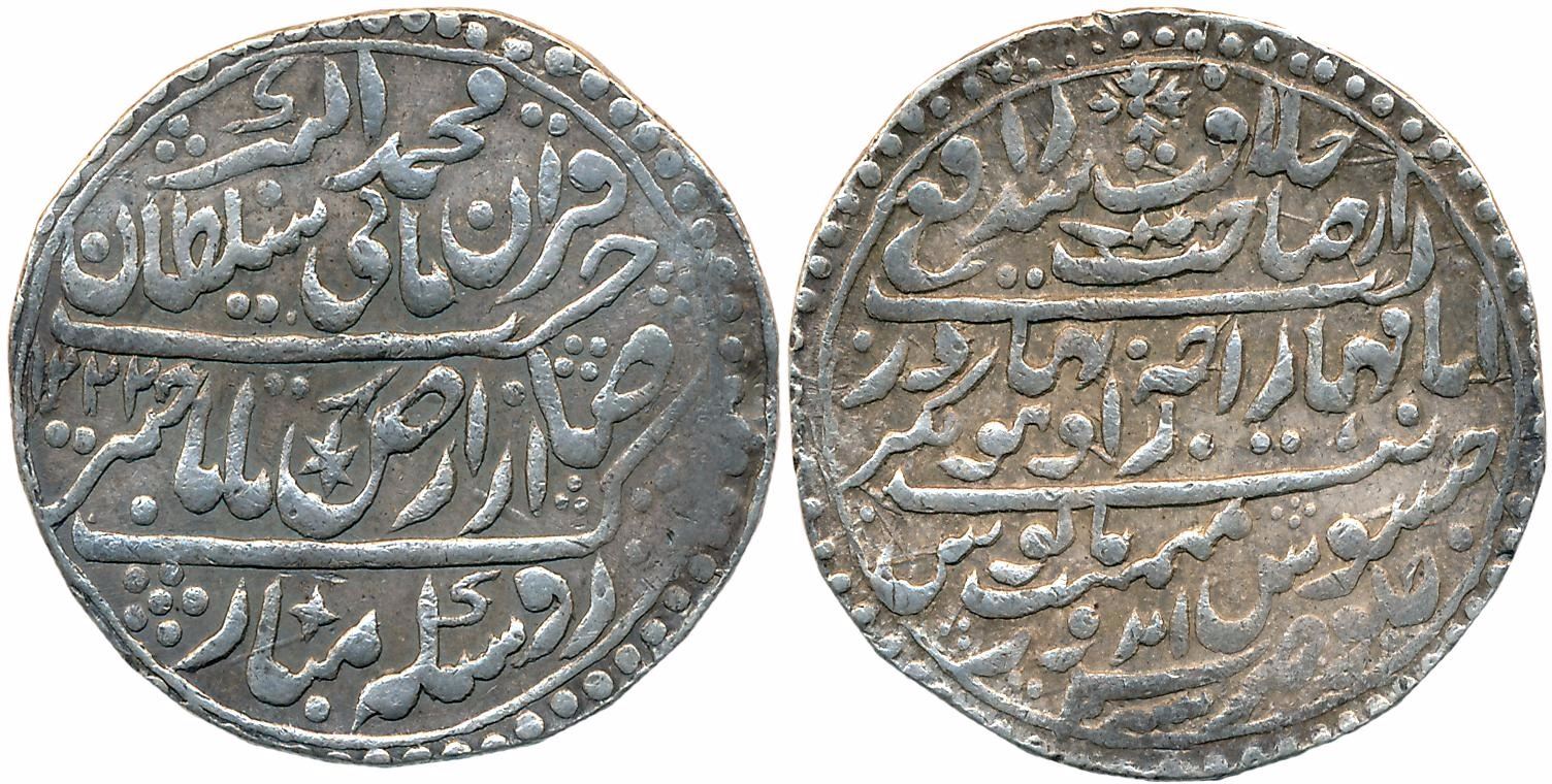 Jaswant Rao, Silver Nazarana Rupee, 14.67g, "Persian Legend" in the name of Muhammad Akbar II, AH 1222 (KM# 8). Very fine, rare.
