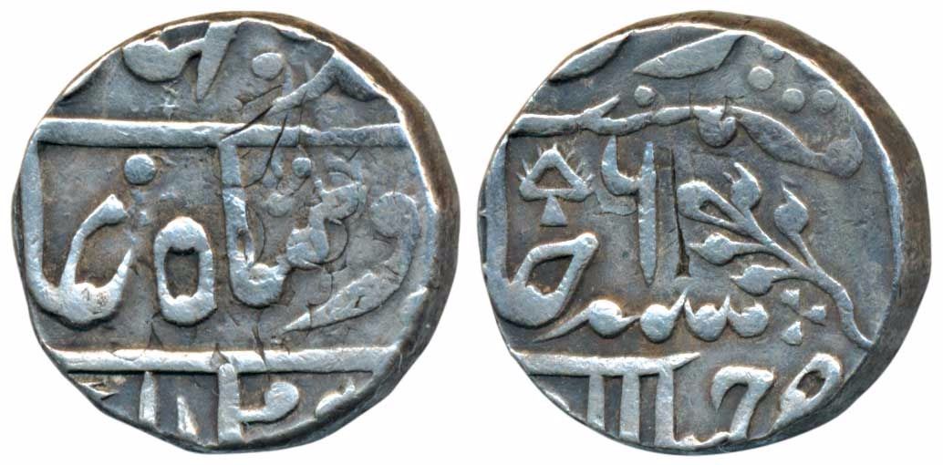 Jhalawar Mint, Silver Rupee, 11.20g, Old Madan Shahi Series, with the name of Bahadur Shah II, RY 6 (KM C28). Very Fine+.