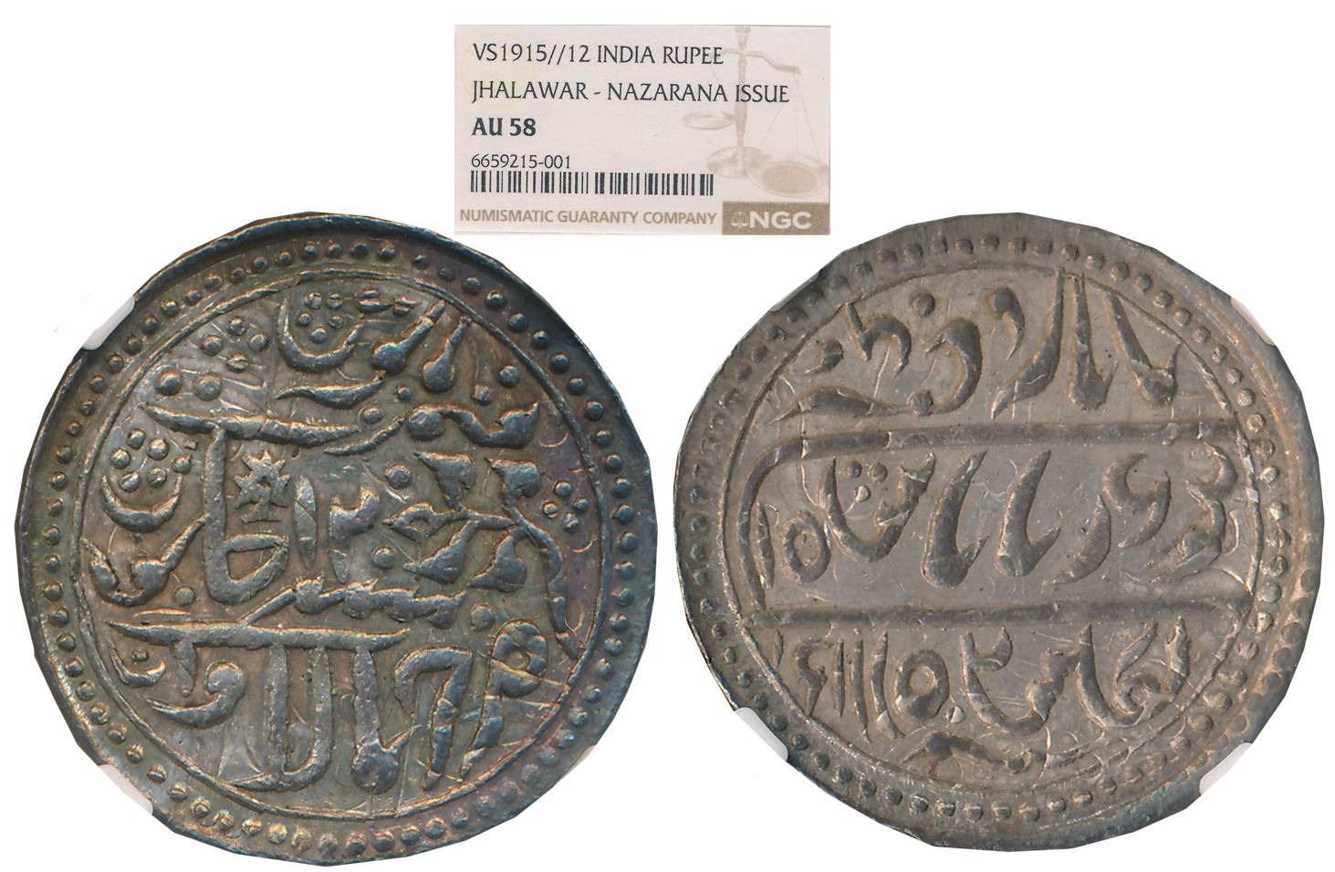 Madan Singh, Silver Nazarana Rupee, “Madan Sahi” series, AH 1915/ RY 12 (KM# Y# 6a). Slab & Graded by NGC as AU58.