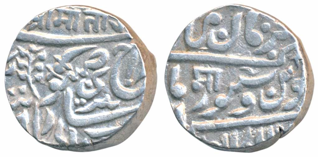 Jaswant Singh II (AH 1290-1313, 1873-1895 AD), Silver Rupee, 11.37g, Pali Mint, with the name of Queen Victoria, Daroga mark ’Ma’, Sri Mataji in nagari (J.Lingen P.09.06.02). Very Fine+.