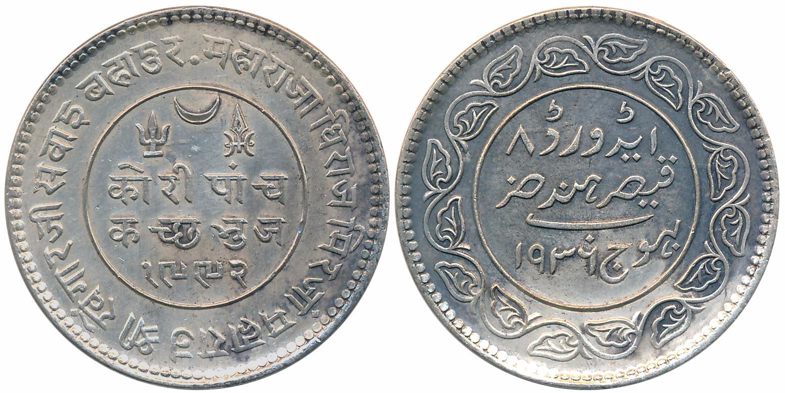 Rao Sri Khengarji, Silver 5 Kori, with the name of Edward VIII, VS 1992/ AD 1936 (KM# Y# 53a, RS# 248.1). Extremely fine.