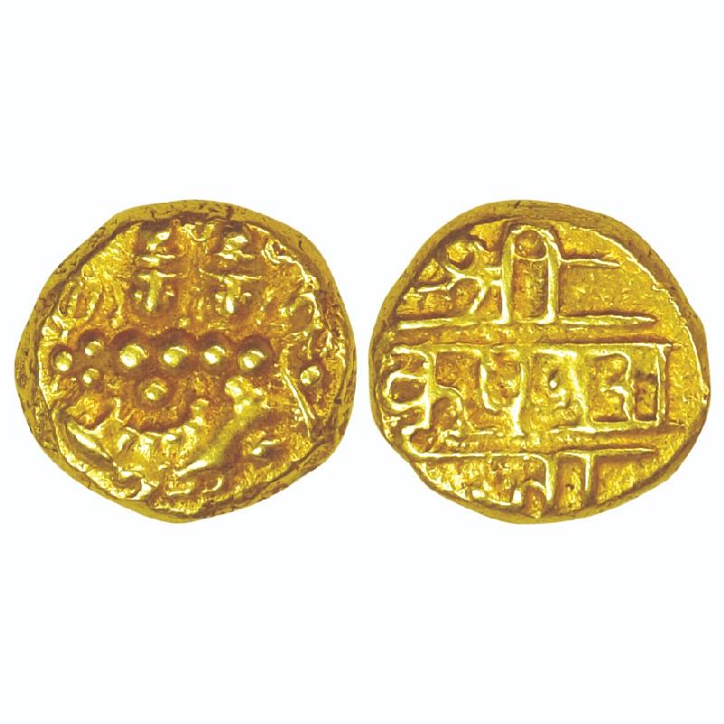 Mysore, Krishna Raja Wodeyar (AH 1225-1285, 1810-1868 AD), Gold Pagoda, Obv: Shiva-Parvati seated, Rev: rulers name in Devnagari ’Sri Krishna Raja’. KM C210. Very Fine+, Rare.