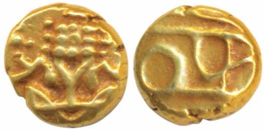 Krishna Raja Wodeyar, Gold Fanam, 0.37g, obv. seated Narasimha, rev. Kanarese legend Kanthirava Narasa Raja (KM C212). Extremely Fine.