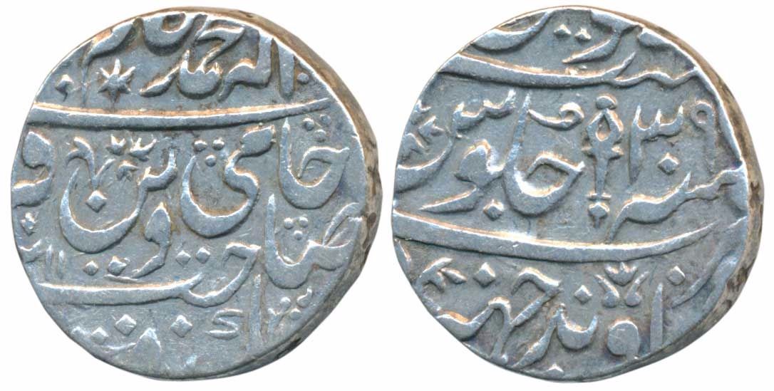 Silver Rupee, 11.03g, in the name of Shah Alam II, RY 40, (KM 32). Very Fine+, Rare with near complete mint name at bottom on reverse.