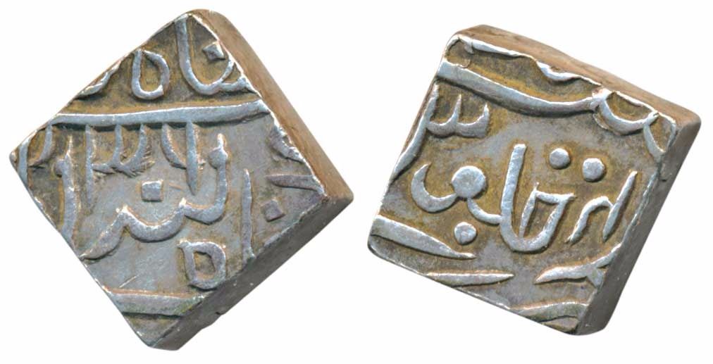 Dulep Singh (AH 1241-1281, 1825-1864 AD), Silver Square Nazarana Rupee, 10.90g, Deogarh Mint, in the name of Shah Alam II, AH (1)236/4(5) (KM 25). Extremely Fine, Very Rare.