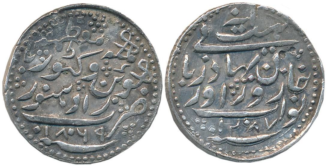 Zorawar Khan, Silver 1/2 Rupee- 8 Anna, 5.67g, AH 1287, with the name of Victoria Queen (KM# 10). Very fine+.