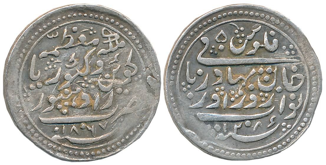 Zorawar Khan, Silver 50 Falus, 5.65g, AH 1284/ AD 1867, with the name of Victoria Queen (KM# 5). Very fine+, rare.