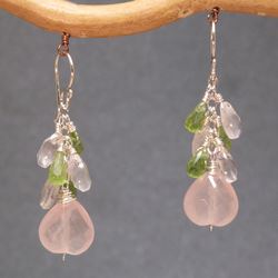 Metal: SilverPeridot, rose quartz, and rose chalcedony, about 1-1/2". Available in either 14K gold-filled, rose gold-filled, or sterling silver. All jewelry is entirely handmade in our studio in New York.