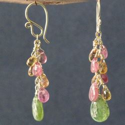 Metal: Gold Pink tourmaline, citrine and vessonite, 1-1/2". Available in either 14K gold-filled, rose gold-filled, or sterling silver. All jewelry is entirely handmade in our studio in New York.
