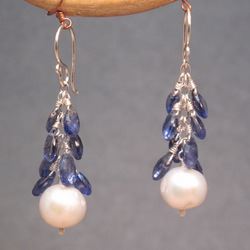Metal: SilverKyanite and ivory pearl on french wires, about 1-1/2".Available in either 14K gold-filled, rose gold-filled, or sterling silver. All jewelry is entirely handmade in our studio in New York.