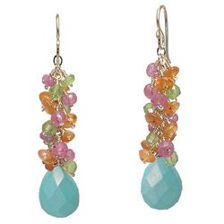 Metal: RoseGold Clusters of ruby, mandarin garnet, and turquoise, about 1-1/2" long. Available in either 14K gold-filled, rose gold-filled, or sterling silver. All jewelry is entirely handmade in our studio in New York.