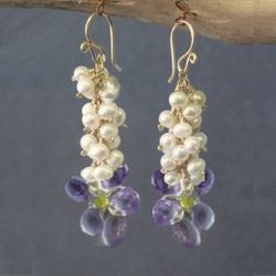Metal: Silver Clusters of pearls and amethyst, about 2" long Available in either 14K gold-filled, rose gold-filled, or sterling silver. All jewelry is entirely handmade in our studio in New York.