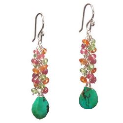 Metal: RoseGoldClusters of peridot, carnelian, ruby, and turquoise, about 2" long Available in either 14K gold-filled, rose gold-filled, or sterling silver. All jewelry is entirely handmade in our studio in New York.