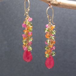 Metal: GoldPink ruby, peridot, carnelian, and ruby, about 2-1/4" long Available in either 14K gold-filled, rose gold-filled, or sterling silver. All jewelry is entirely handmade in our studio in New York.