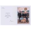 Pair of Christmas cards from Princess Anne, both featuring her initial ‘A’ on the front, measuring 12 x 8 open, and featuring a photo of Anne, her husband Timothy Laurence, and her two children affixed inside, with one signed in ink by Anne and Timothy, and the other signed only by Anne. In overall fine condition, with a few small stains to the dual-signed card.