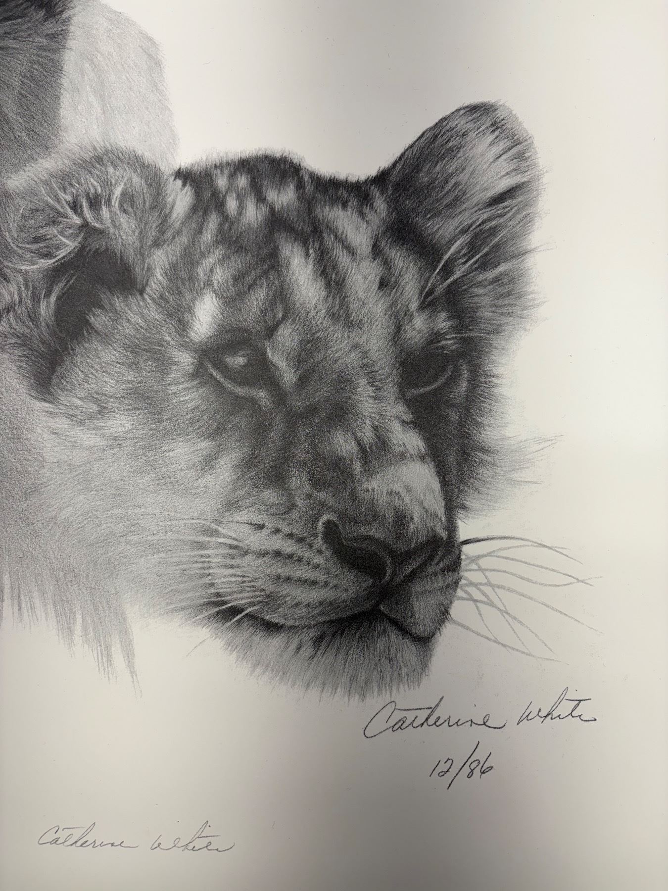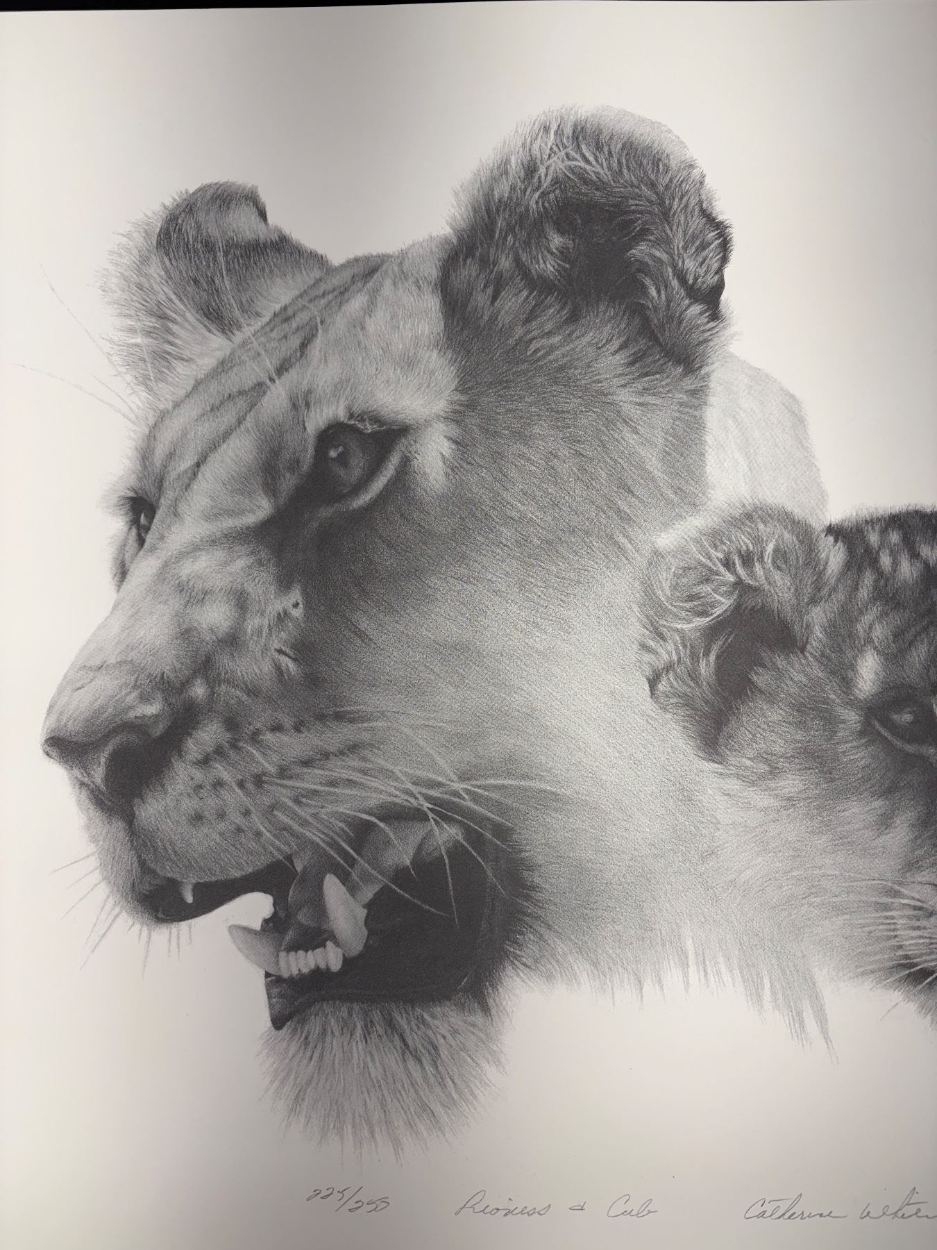 "Princess & Cub" #225/250 Print By Catherine White Dated 12/86 Approx 18" x 24"