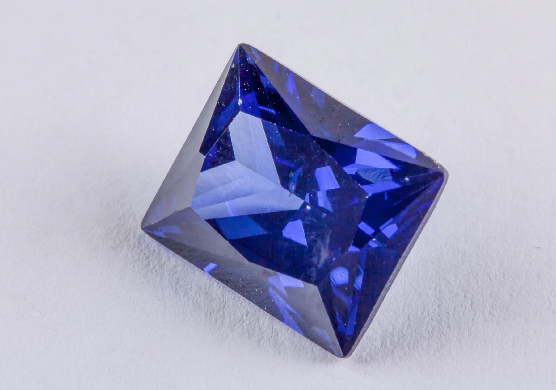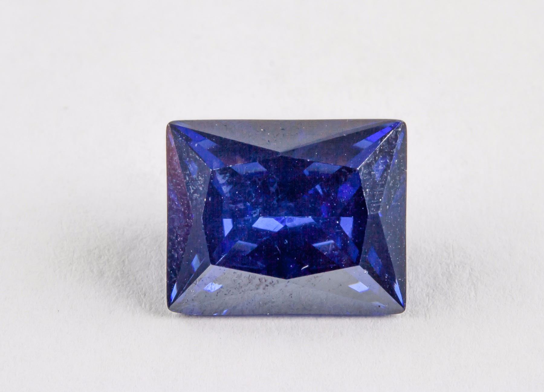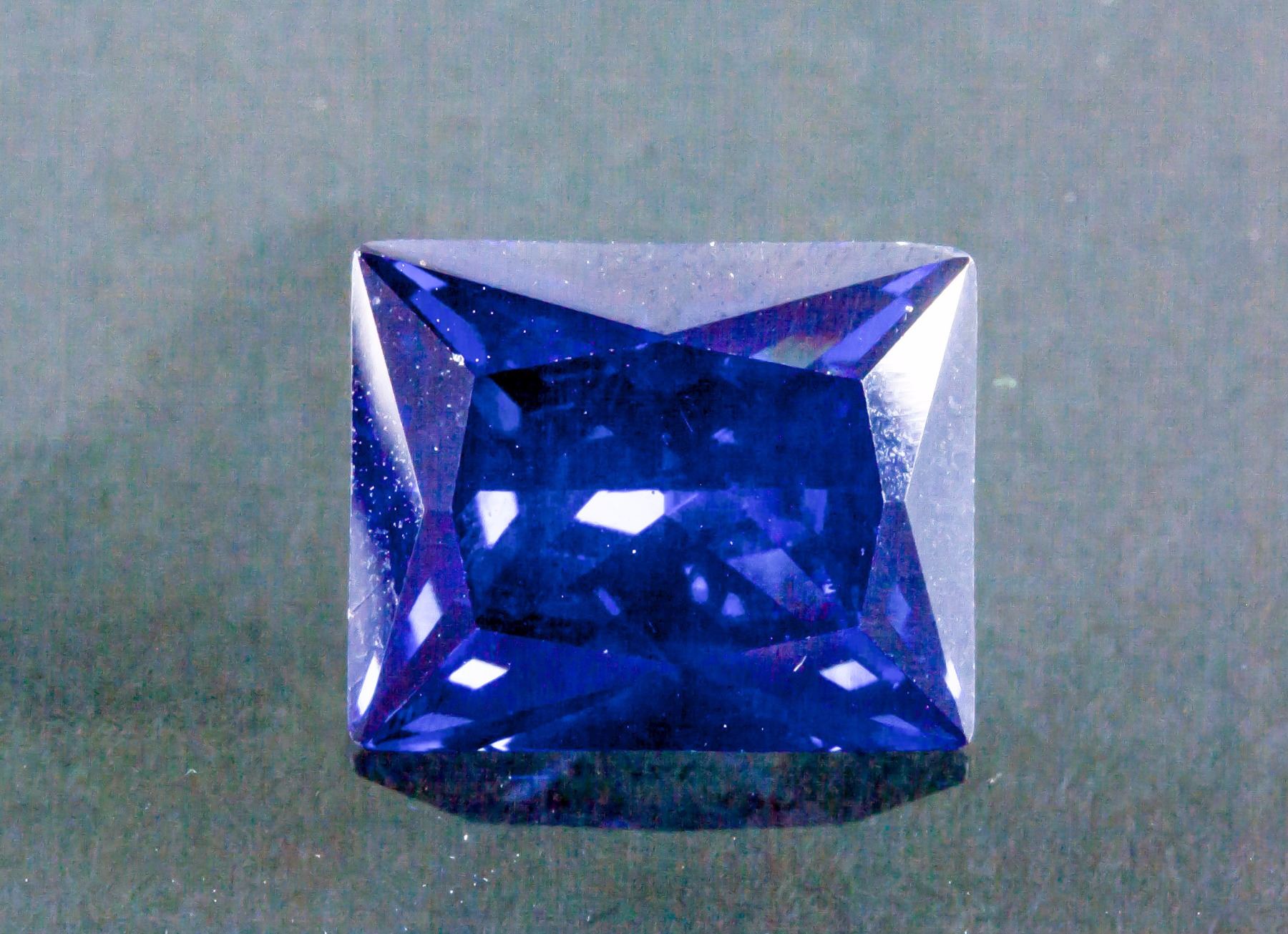 Princess cut blue sapphire; 11.01 mm x 8.96 mm, 7.570 ct