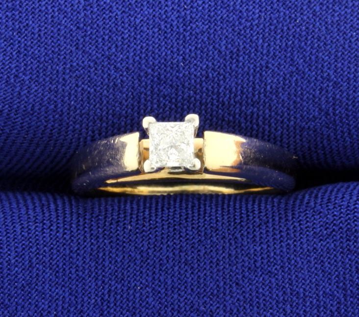 The princess cut diamond is 0.25 carats (1/4 carat) with SI clarity and G color. Ring is 3.5mm at top of cathedral. Size 5. 4.6g