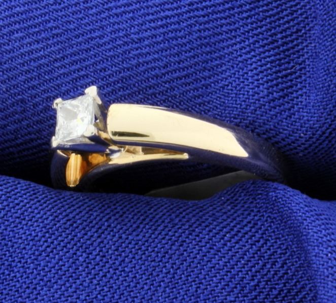 The princess cut diamond is 0.25 carats (1/4 carat) with SI clarity and G color. Ring is 3.5mm at top of cathedral. Size 5. 4.6g