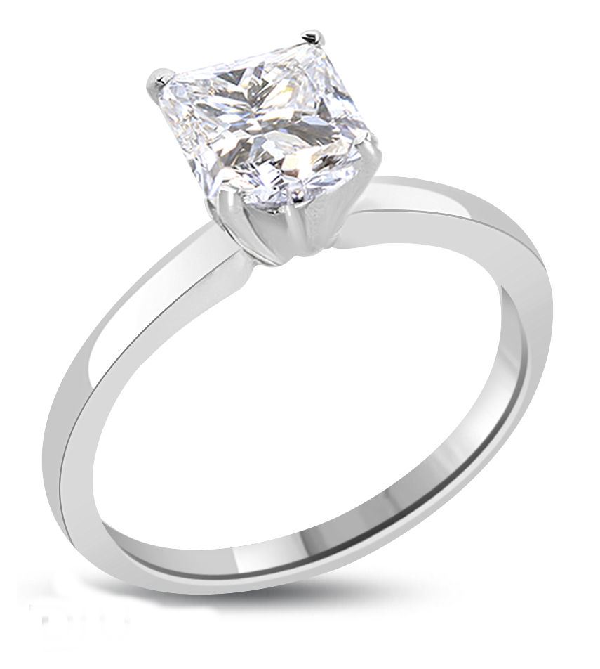 14K white gold 2.00 grams...size 6.75; 100% natural earth mined diamond...Princess cut...1.01 ct.....E/F - SI2....CLARITY ENHANCED;